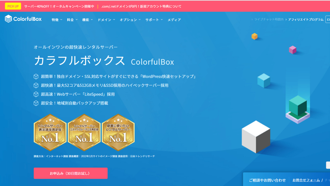 カラフルボックスは、2018年に会社として設立された新しいホスティングサービスですが、全プランに最新のSSD、Webサーバーに「LiteSpeed」を採用し、高速・高性能で有名なConoHa WINGやエックスサーバーに匹敵するレベルのスペックを実現しています。