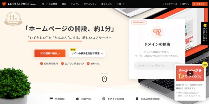 コアサーバーでは、30日間の無料お試し期間を設けており、レンタルサーバーとしては非常に長いお試し期間となっています。