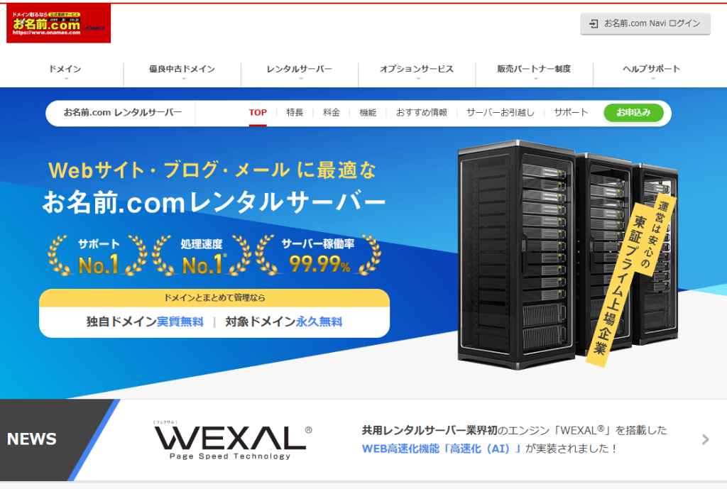 実はお名前.comはドメインだけでなく、「レンタルサーバー」や「VPSサーバー」なども提供しています。