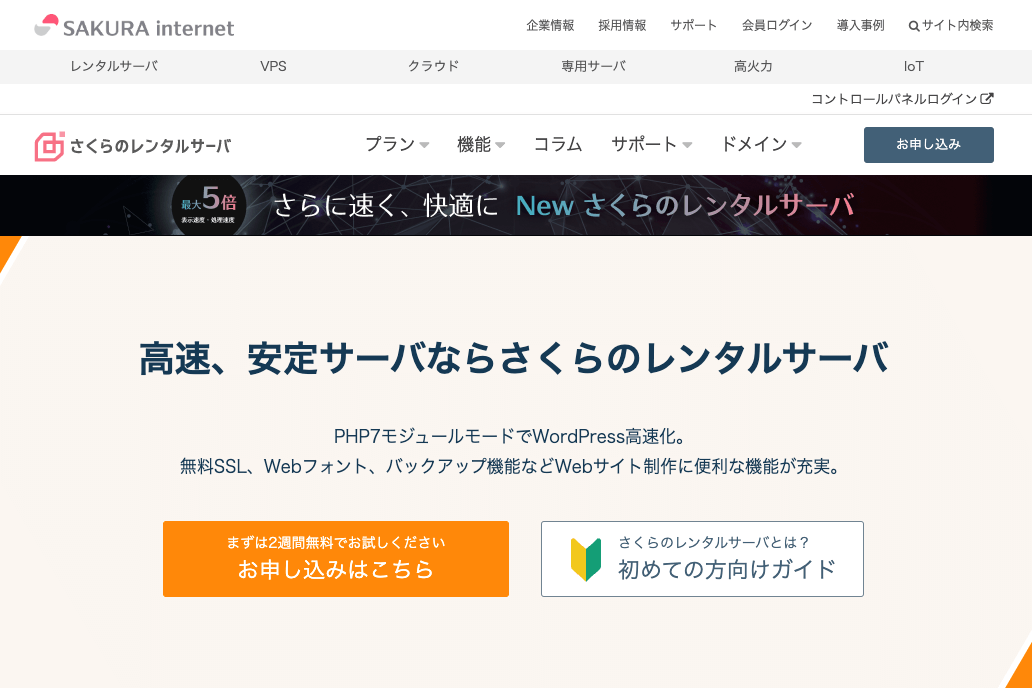 さくらのレンタルサーバの初期費用は、ライトプランからビジネスプロプランまで、すべてのプランで無料です。ただし、新規のお客様のみ対象となります。