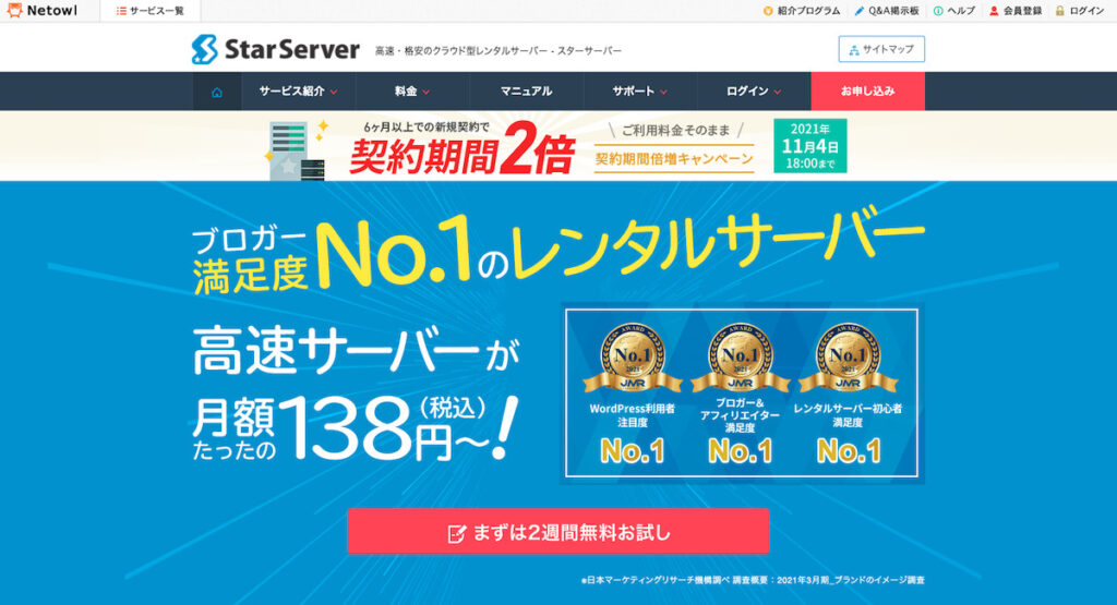 「スターサーバー・フリー」という無料プランも用意されています。