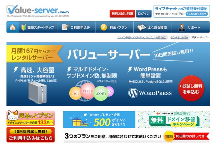 一方で、バリューサーバーはプラン変更ができないため、小さなプランから始めて、サイトの規模に応じてアップグレードすることができず、規模が大きくなる可能性のあるサイトには不利な条件です。